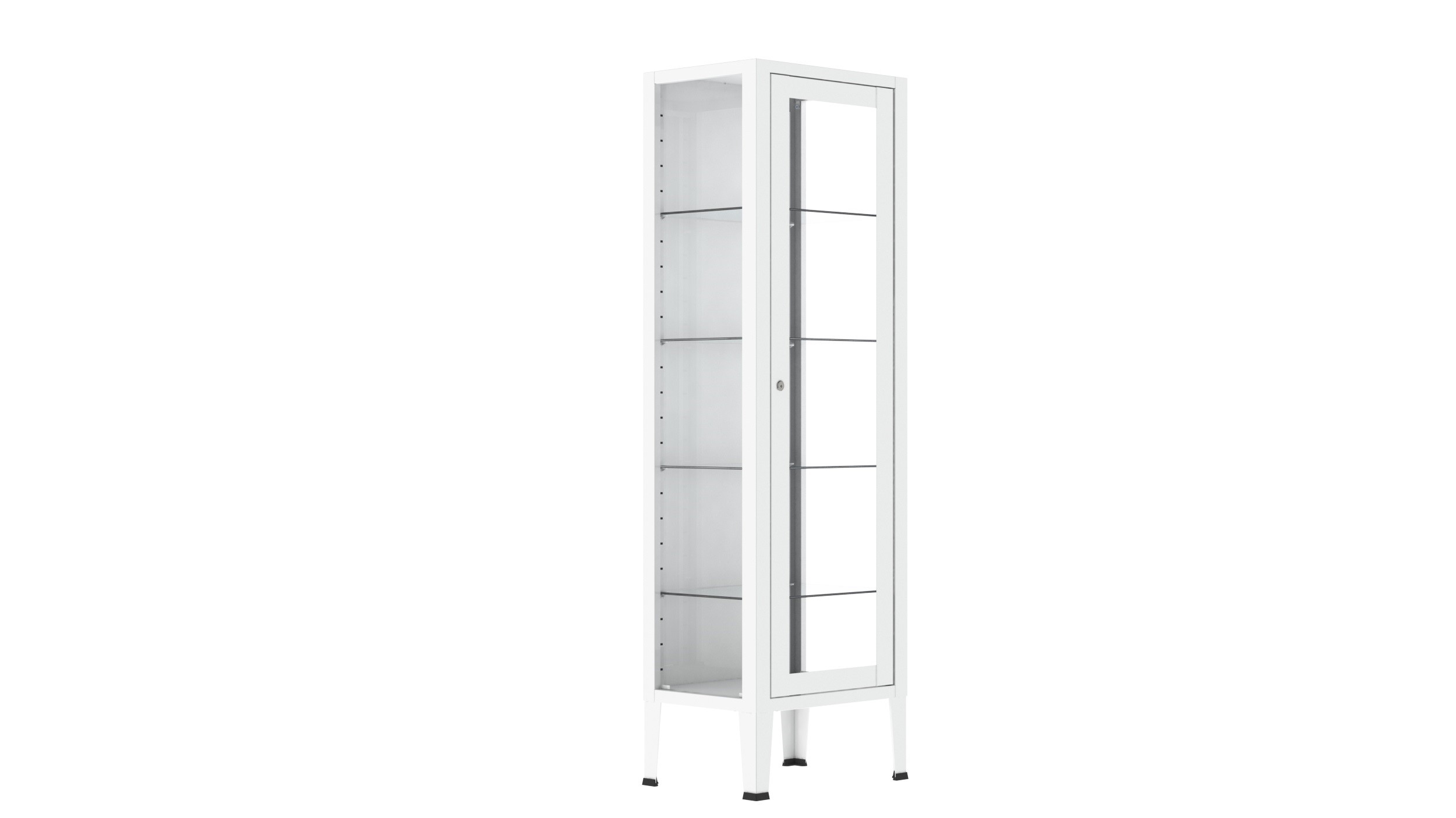 Armário de medicamentos com 4 prateleiras em vidro ajustáveis em altura.