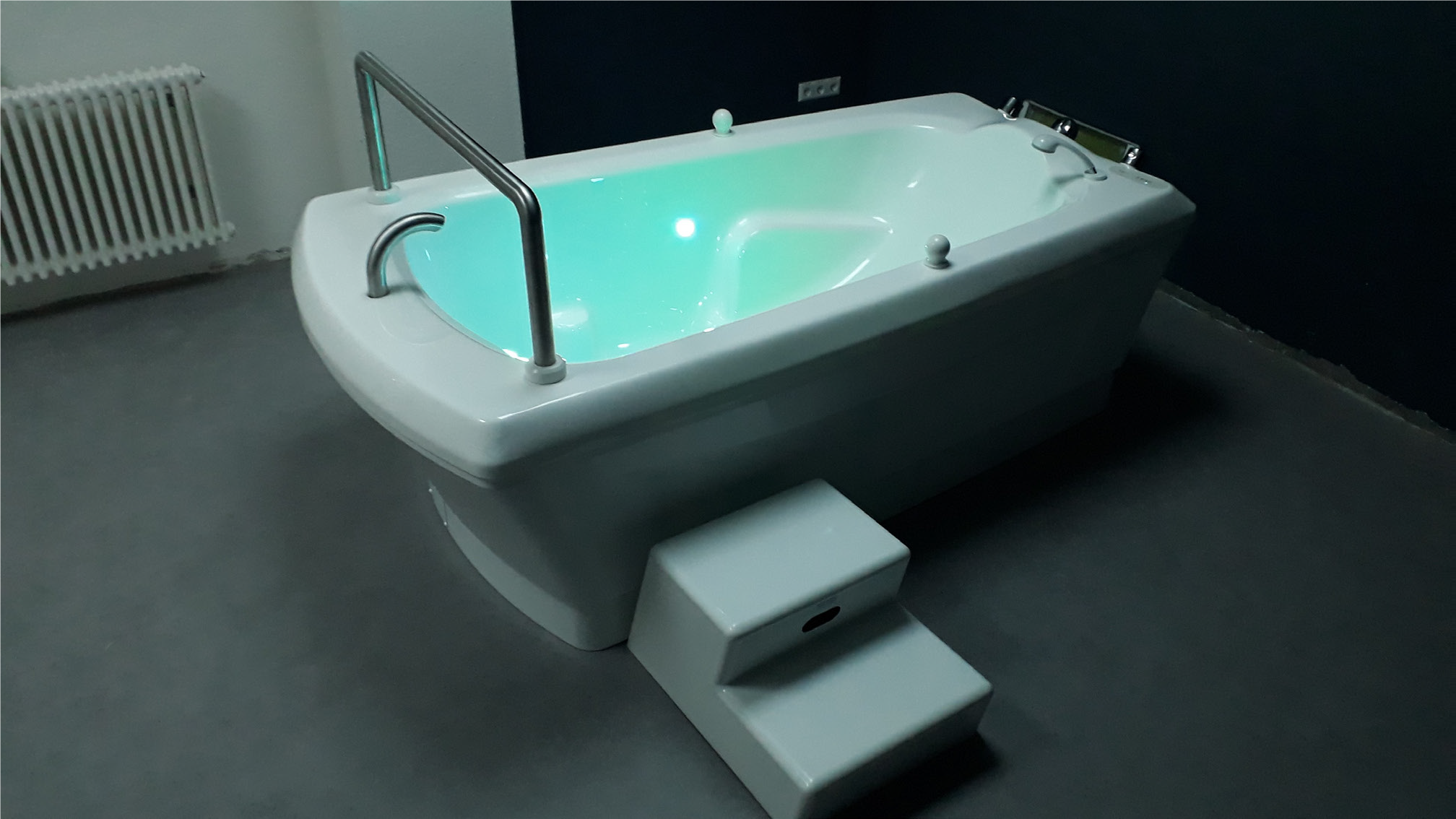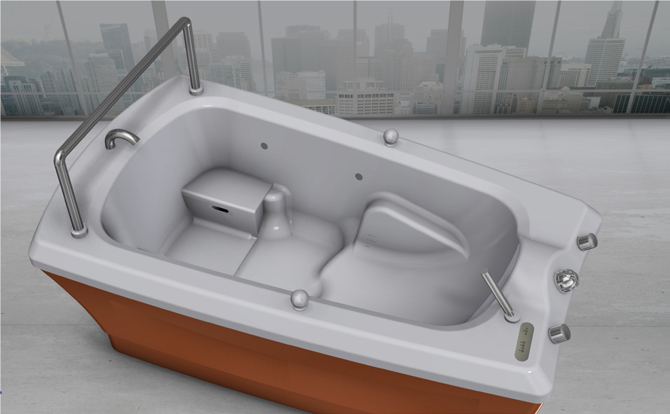 - Banheira de parto desenvolvida em colaboração com parteiras experientes de uma maternidade e um ginecologista.